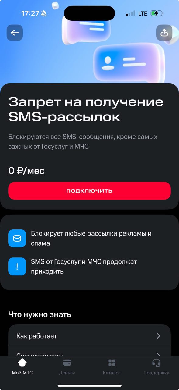 абонент может установить самозапрет на получение SMS,